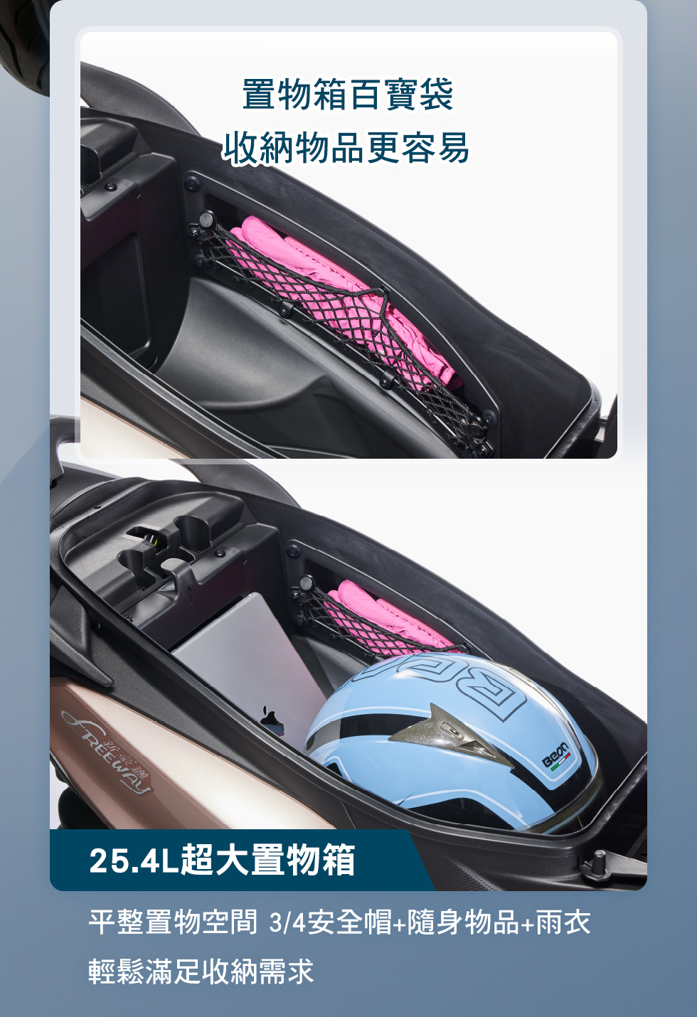 | 前置物箱空間 | 可放置 700 cc 飲料杯 | |