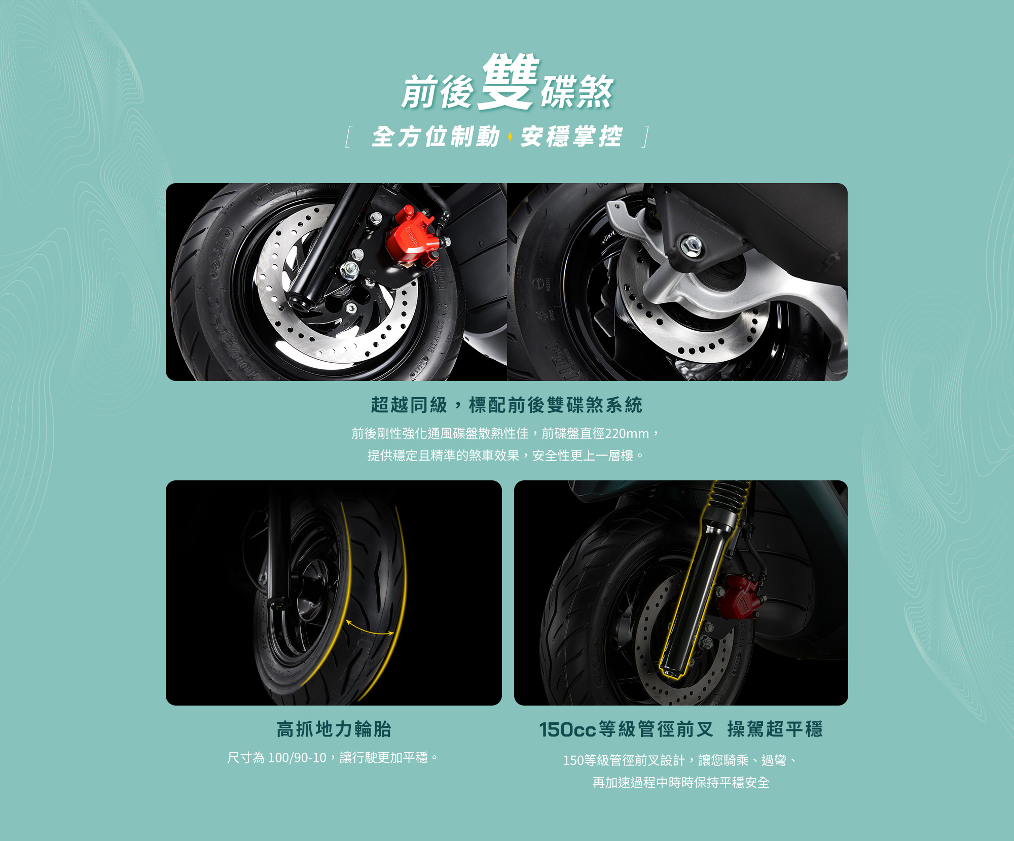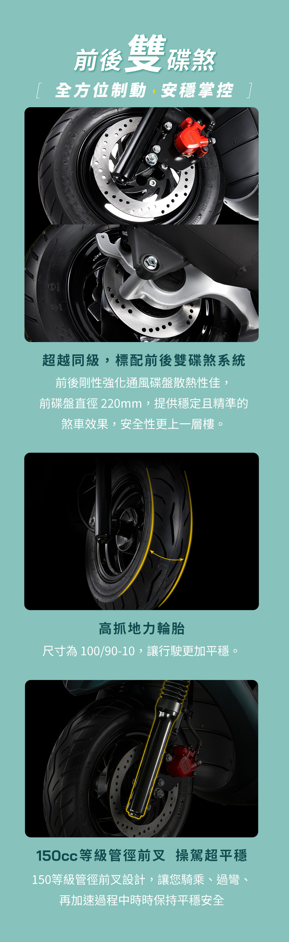 | 輪胎尺寸 (FR/RR) | 100/90 – 10 | |