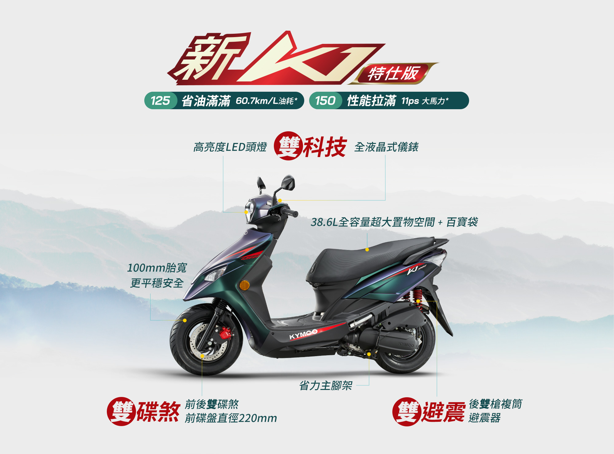 影片僅供觀賞使用,促銷內容以當月公告為準,KYMCO保有影片內容變更修改之權利。